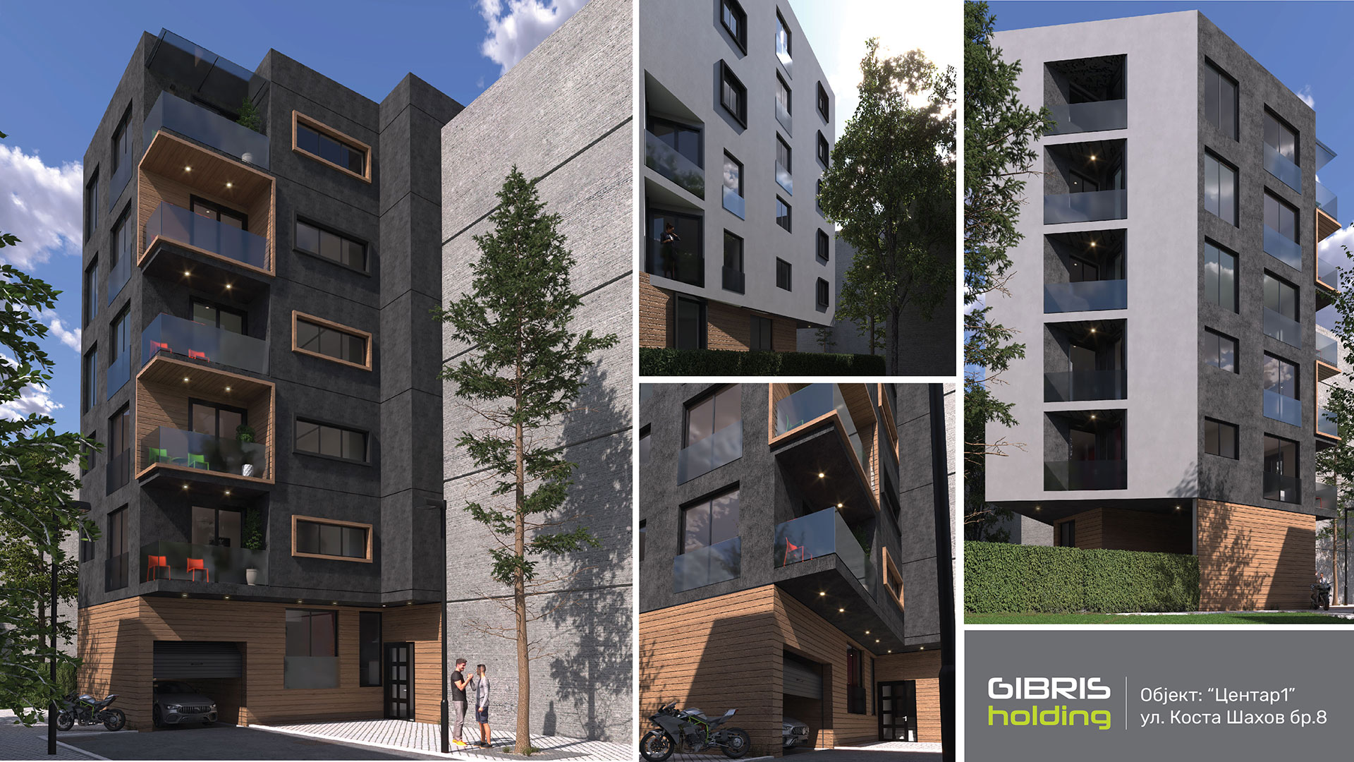 Новиот проект „Центар 1“ претставува современ станбен објект за квалитетно домување, со особено модерно и ефектно визуелно-фасадно решение. Објектот е лоциран во строгиот центар на Скопје, на ул. „Коста Шахов“ бр. 8, КО Центар 1, веднаш позади студентскиот центар „Кузман Јосифовски Питу“. Со својата архитектура, висока естетика и имплементирани технолошки решенија, објектот, ќе претставува модерен урбан белег. Објектот е сместен во исклучително мирна микро средина, а е истовремено во централното градско јадро. Со својата местоположба објектот е на пешачко растојание од главниот градски плоштад „Македонија“, многу културни знаменитости, градинки, основни и средни училишта, државни органи и институции. Неговата местоположба објектот го прави поволен и за семејно домување, со сета потребна инфраструктура во непосредна близина, како за деловно работење, издавање и работни канцеларии, така и за исклучително квалитетно семејно домување.Објектот ќе биде сочинет од 8 станбени единици, П+4+Пк.За дополнителен комфор и квалитетно живеење, обезбедени се и 8 паркинг места и подрумски простории.