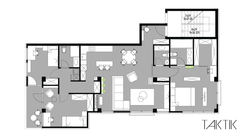 Изградениот објект во Тафталиџе 1, ул. Букурешка бр. 2Д, е проектиран и наменет за интимно и мирно живеење во комплетно заокружен инфраструктурен објект кој е сочинет од вкупно 8 станбени единици (П+2+Пк). За секој стан е обезбедено паркинг место и подрумска просторија.